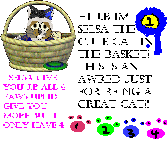 My claim to fame: Like I said before, I was born in Petz 2. Well, soon Nora got really attached to me, so she taught me really cool tricks and took good pictures of me. Soon, she gave me singing and dancing lessons and I entered some petz shows and sang "On My Own" from Les Mis (the musical) at Silver Moon Kennelz (Nora's origonal site). Nora then went and entered me as a model at several sites, some sites saw my many pictures uploaded at PFM's site and asked about my oufits and bathing suits, plus two people asked me to model or be a mascot for a while. I started showing up and other's websites and eventually Nora found of a magazine called Animale, a cool Petz fashion magazine. I am a perm. model there and now many people have me on their site. I can sing and dance, and, I admit, I'm a ham for the camera. The rest is history...